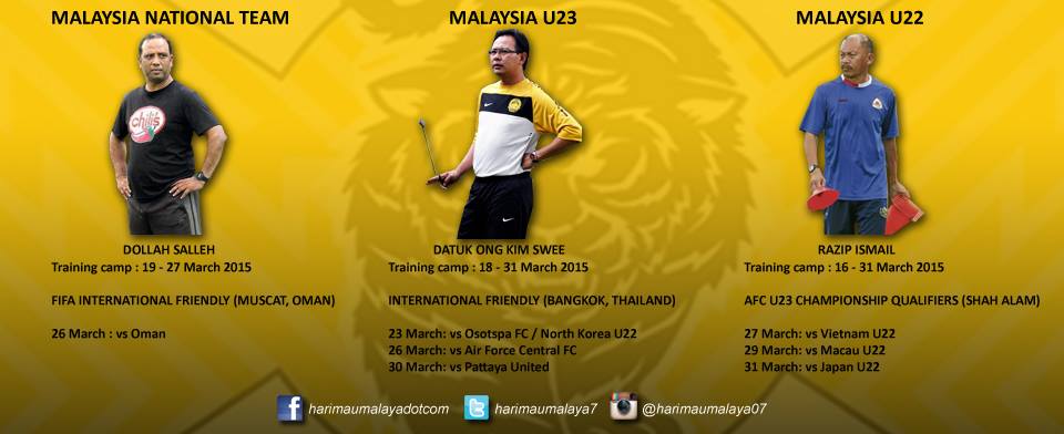ตารางการแข่งขันฟุตบอลของทีมชาติ Malaysia /U23/U22 (March 2015)