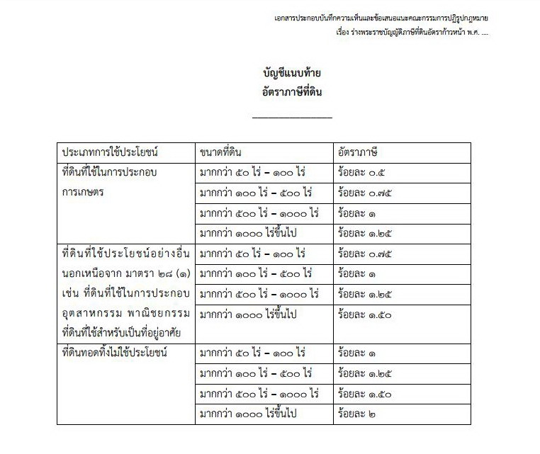 ( ภาพประกอบอัตราภาษีที่ดิน ฉบับ คปก. )