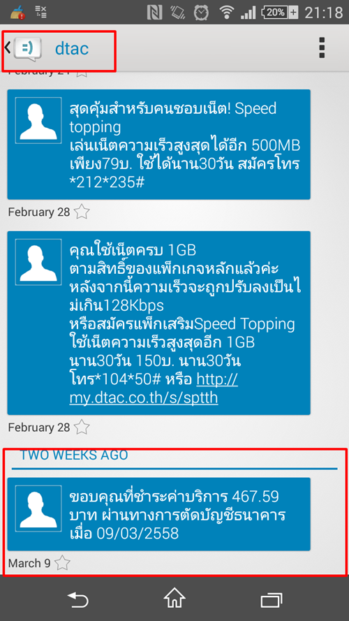 ซึ่งวันที่ 9 มีนาคม เรามีแจ้งหักชำระเงินเรียบร้อยแล้ว เป็นข้อความจาก DTAC