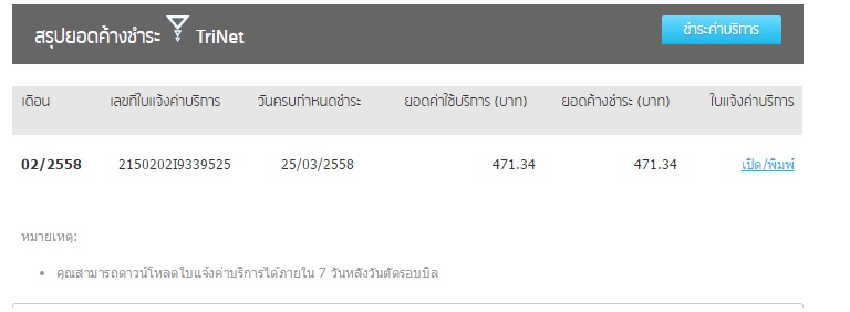 วันนี้มีใบแจ้งค่าบริการส่งมาแจ้งว่าเรามีค้างชำระของเดือน 1 ซึ่งต้องตัดชำระเงินผ่านบัญชีธนาคารวันที่ 9 มีนาคม (ปกติเราตัดวันที่ 25)