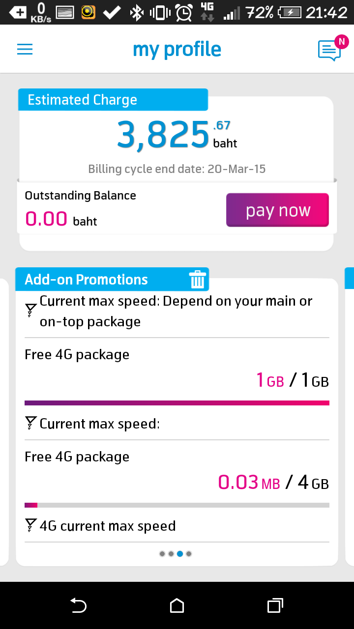 สวัสดีครับ ใช้โปร true 3G ismart เดือนละ 199 บาท อยู่ แต่เมื่อกี้ลองให้เครื่องรับสัณญาณ LTE มันก็รับได้ logo H+ เปลี่ยนไปเป็น 4G แถมกด test ไป ความเร็วก็เร็วดีตามแบบ 4G (แต่ขาอัพโหลดดันเน่า) แบบนี้ห