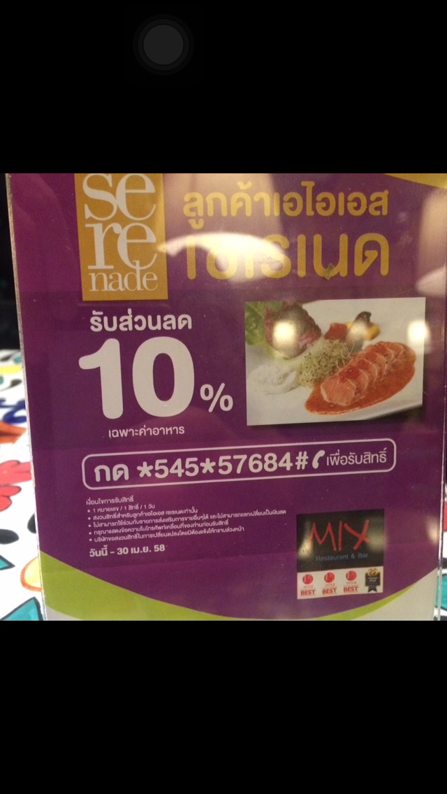 เรื่องมีอยู่ว่า วันนี้ผมได้ไปทานอาหารที่ร้าน MIX Restaurant & Bar (เทอมินัล 21) แล้วมี การ co-promotion กับทาง ais รายละเอียดตามภาพด้านล่างครับ