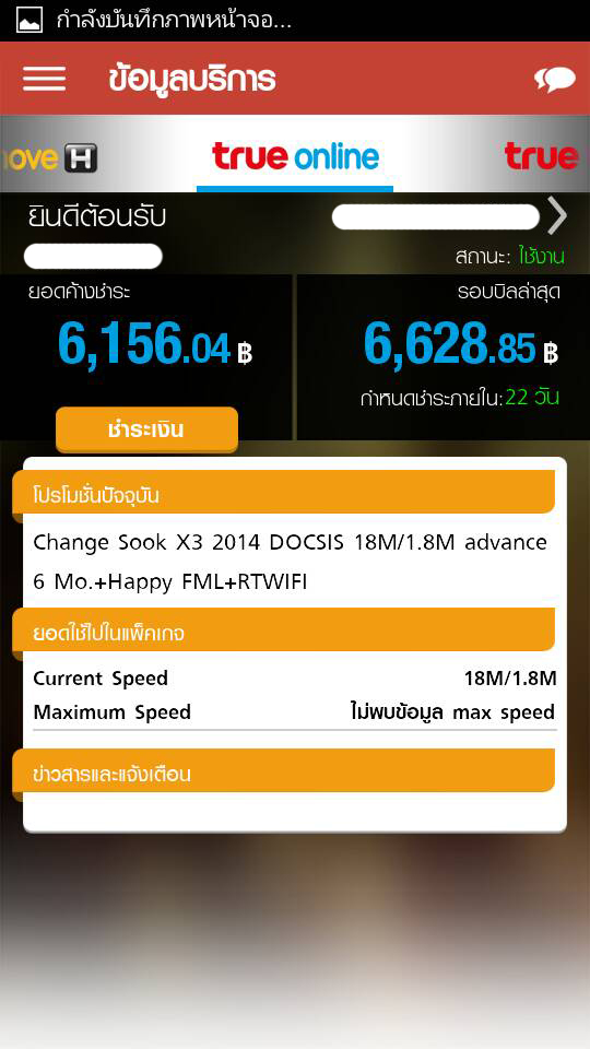 ผมใช้งาน ส.ค.57 เป็นเดือนที่ 6 จากนั้นสั่งระงับสัญญาณชั่วคราวครังที่ 1 เดือน ก.ย.-พ.ย.57 ครบ 3 เดือนและจ่ายเงินไปประมาณ 470 บาท (ค่ารักษาสัญญาณ) และระงับต่ออีก 3 เดือน คือ ธ.ค.57-ก.พ.58 เงิน 470 ที่จ่ายไปของรอบแรก มันยังค้างในระบบอยู่เลย พนักงานบอกว่าจ่ายก่อนได้ ระบบจะตัดเอง แต่รอบที่ 2 นี้ผมไม่จ่ายก่อน รอให้ระบบแก้ไขดีๆก่อน ช่วง15-16 มี.ค. 58 ไปถามพนักงาน ว่าอัพสปีดจาก 12M เป็น 18M ตามโปรโมชั่นปัจจุบันโดยไม่เสียเงินได้หรือไม่ พนักงานตอบว่าได้และจัดการในระบบให้ แล้วบอกว่าจะใช้ได้ 12 เดือนนะ พอวันที่ 17/3/58 ทรูไอเซอร์วิส บอกยอดค้างชำระ -470 บิลรอบล่าสุด 66xx (เออ งง บิลรอบล่าสุดจ่ายตอนไหนวะ 66xx) มาวันนี้ มันขึ้นแจ้งแบบในรูป สรุปมันคืออะไร จริงๆยอดที่ค้าง ก็ค้างแค่เงินที่ต้องจ่ายค่าระงับสัญญาณครั้งที่ 2 แค่ประมาณ 470 เองนะ หรือจะคิดรอบเดือนมีนาคม 58 ก็บวกไปแค่ประมาณ 856 บาท