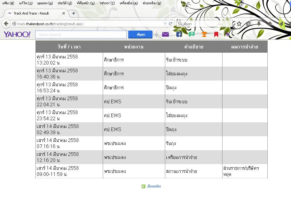 เราทำการส่งเอกสารไปที่สถานที่ราชการตั้งแต่วันที่ 12 ธ.ค.60 ในรูปแบบ ems แต่ในแอพที่ใช้เช็คพัสดุ ขึ้นเตรียมการนำจ่ายในวันที่ 13 ธ.ค. 60 เวลา 19.20น. ก็คิดในใจ สถานที่ราชการที่ไหนมันจะเปิดเวลานี้ แล้วเว
