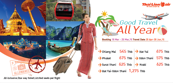 ไลอ้อนออกโปรหลายเส้นทาง ราคาเริ่มต้น 545 บาท สำหรับเส้นทางกรุงเทพ - เชียงใหม่
