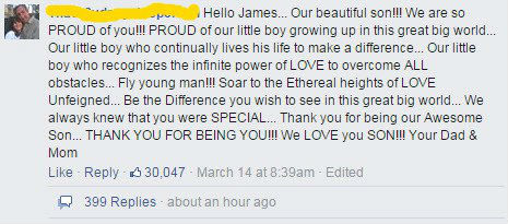 Hello เจมส์ ลูกชายคนงามของพ่อ!!! พวกเราภูมิใจในตัวลูกเหลือเกิน!!!