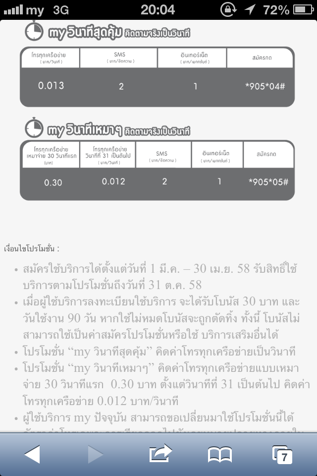 สวัสดีครับ พอดีผมสนใจจะเปลี่ยนแพ็คเกจโทรของmy 3Gแบบคิดเป็นวินาทีแบบในรูปนี้ อยากทราบว่า0.013บาท/ต่อวินาที ถ้าโทร1นาทีเท่ากับว่าต้องเสียค่าโทร78สตางค์ ผมเข้าใจถูกไหมครับ