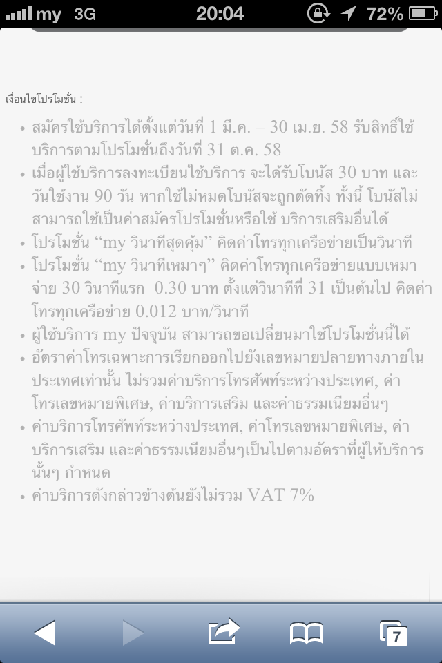 เป็นโปรหลัก มี 2 โปร ตามนี้ โปรแรกคิดง่าย 0.013*60วิ ตก นาทีละ 0.78 ฿ โปร 2 เหมาจ่าย 30 วิแรก = 0.3 +(0.012*30)= 0.66 สำหรับนาทีแรก นาทีต่อไป 0.012*60= 0.072 ฿/นาที