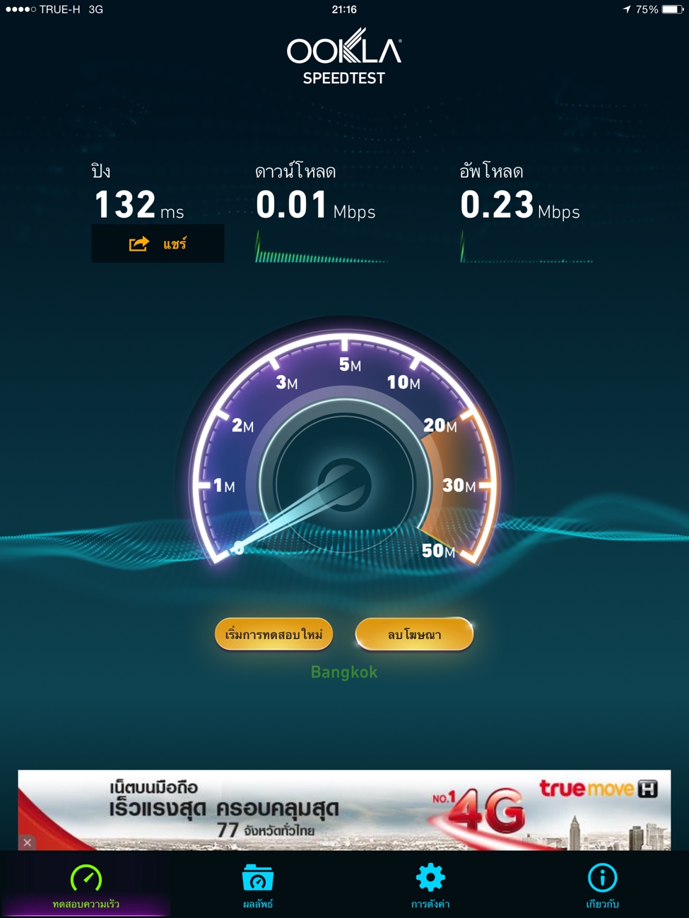 นั้นไม่น่าเลย true โทรมาให้เพิ่มความเร็วเป็น 30mb เพิ่ม 100 เอง ได้เรื่อง test ได้ไม่ถึง 2mb