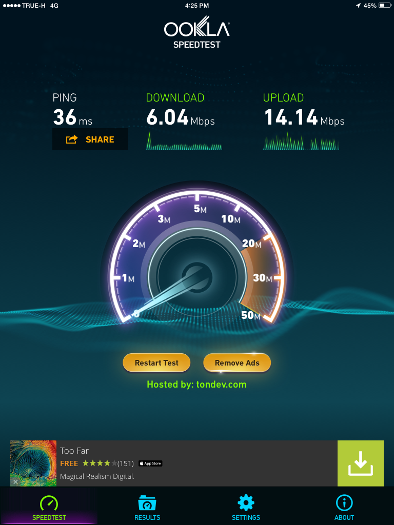 ใช้โปรเติมเงินทรูเอชอยู่ เล่นเน็ตในไอแพด เห็นคนอื่นๆแชร์ความเร็ว4gได้10mb+กันทั้งนั้น