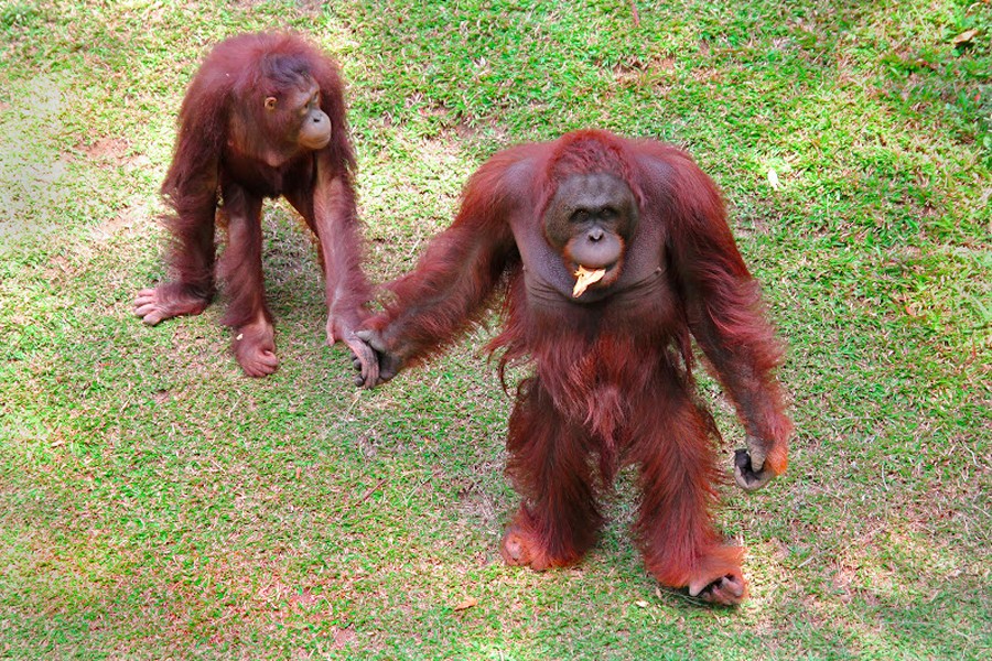 ไม่ว่าจะไปไหน มือของเจ้าอุรังอุตังทั้งสองจะต้องจับกันไว้แน่นตลอดเวลา