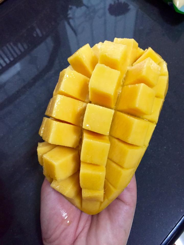 กรีดมะม่วงแบบนี้ เวลาดันออกมาจะสวยค่ะ