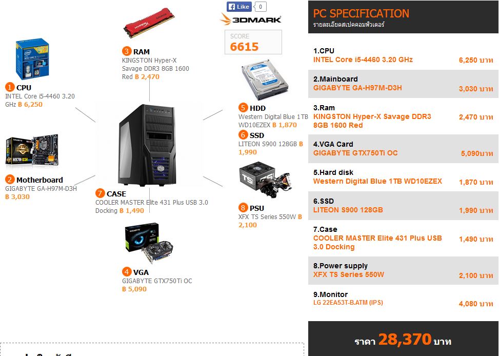 CUP INTEL Core i5-4460 3.20 GHz << ตอนแรกจะเอา4590 แต่เห็นว่าไม่ต่างกันมาก