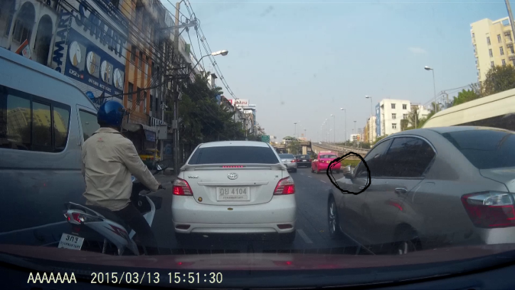 กล้องติดอยู่ในรถแท็กซี่ จอดติดไฟแดงอยู่ที่แยกอรุณอัมรินทร์ กำลังจะไปส่ง ผดส ที่ เซ็นปิ่น