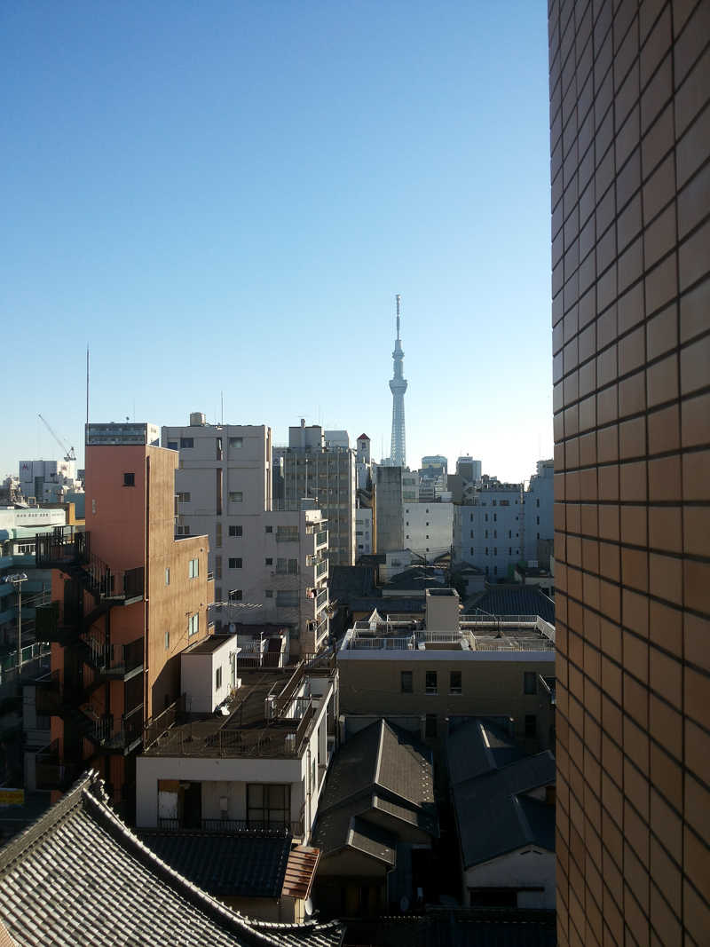 ผมพักอยู่ชั้น8ครับมองเห็นTokyo sky tree แบบนี้ครับ