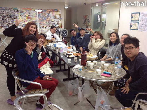 และมุมนี้เองที่เป็นมุมของความสนุกสนานทำให้รู้ว่าการพัก guesthouse มันดีอย่างนี้นี่เอง เพราะพอเราเดินกลับเข้ามาก็จะโดนลากมานั่งที่โต๊ะทั้งท่ไม่รู้จักกัน แต่ก็มานั่งร้องเพลงด้วยกัน เอาของกินมาวางกินรวมกัน ร้องเพลงด้วยกัน โดยเฉพาะเพลง เสก โลโซ เจ้าหน้าที่ร้องและเล่นกีต้าร์กันคล่องมากๆ ร้องเพลง เทียน มี่มีด้วย ที่นั่งรวมกันอยู่ มีทั้งเกาหลี ไทย ญี่ปุ่น จีน สเปน แต่ก็ลัลล้ากันมากๆ…..โดนให้กินโซจูผสมเบียร์เยอะมากๆๆกินกันเป็นน้ำเลย