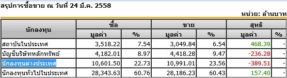 สรุปการซื้อขาย ณ วันที่ 24 มี.ค. 2558
