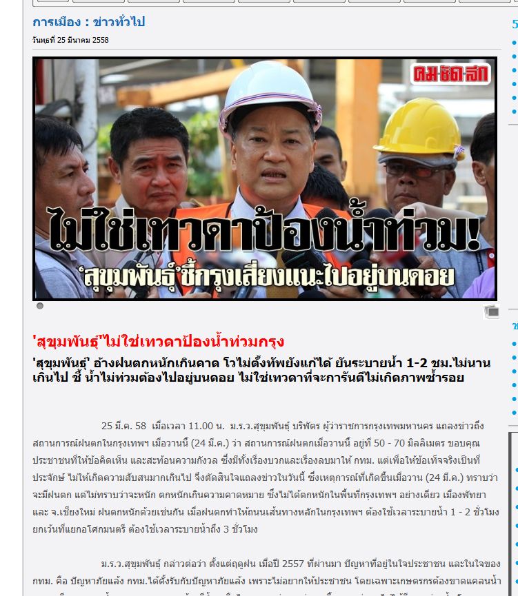 การที่ ผู้ว่า ปัดสวะ บอกว่า เชียงใหม่ กับ พัทยา ยังท่วม เป็นการไม่ยอมรับผิดชอบกับสิ่ง