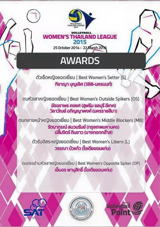มาแล้วครับสรุปรางวัลยอดเยี่ยมแต่ละตำแหน่งวอลเลย์บอลไทยแลนด์ลีก2015