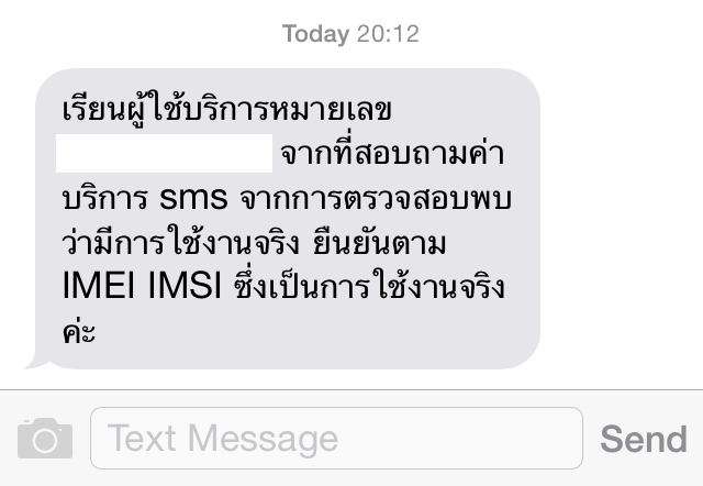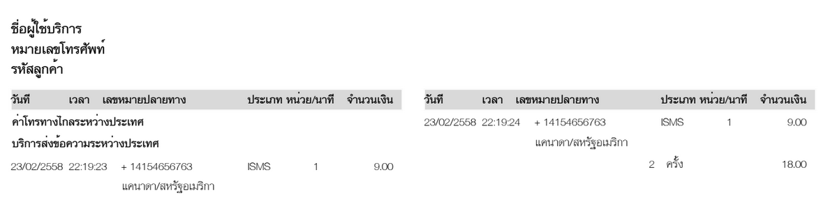 ผมได้รับใบแจ้งค่าใช้บริการพร้อมค่าบริการส่งข้อความระหว่างประเทศ
