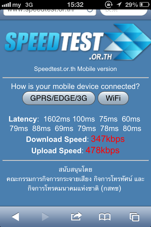 ผมใช้อยู่เกาะสมุย บริเวณ ตำบลแม่น้ำ ใช้แพ็คเกจ 25 บาท 7 วัน ที่ความเร็ว 384 Kbps ผลทดสอบที่ได้ เกินกว่าอีกคัพ เพื่อนๆมาแชร์กันหน่อยครับว่า ได้ Speed เท่าไหร่กันบ้างคัพ ขอบ่นเรื่องการเติมเงินนิดนึงครั