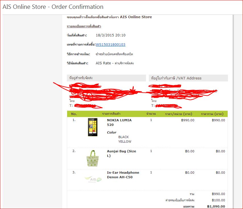 1. สั่งซื้อมือถือราคาพิเศษไป 18/3/58