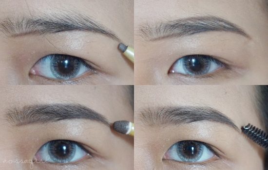 - ใช้ที่เขียนคิ้วแบบฝุ่นลงให้ทั่ว เว้นหัวคิ้วไว้นิดนึง
