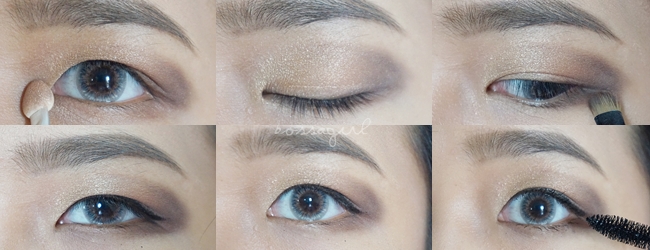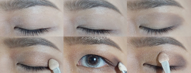 - ใช้สีน้ำตาลอ่อนลงที่ขอบตาล่างแล้วเกลี่ยให้เชื่อมกับหางตาบน