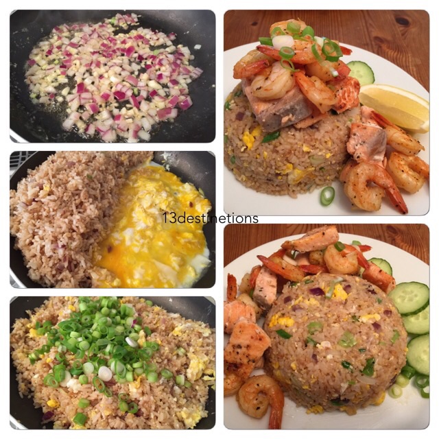 ทำอาหารง่ายๆ..ข้าวผัดกุ้งและแซลม่อน