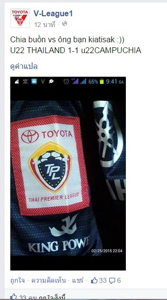 เพจ Vลีก เวียดนาม โพส อาร์มไทยลีก พร้อม สกอร์U-23 คู่ ไทย - เขมร