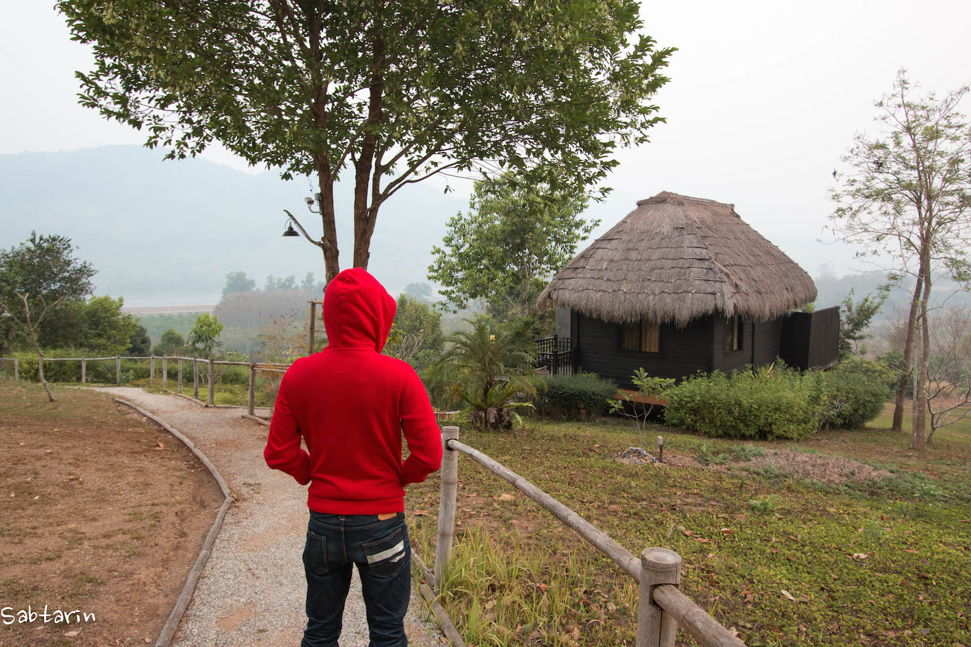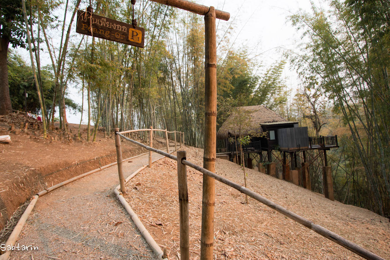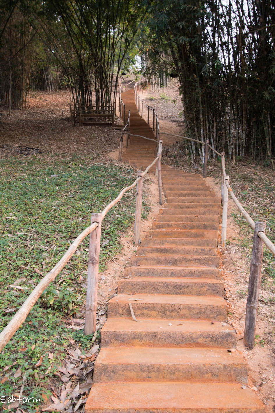 พร้อมกับชี้ให้ดูบนเนินเขาเห็นอยู่ไกลลิบๆถามว่าประมาณกี่กิโลครับน้องเค้าบอกว่าเดินไปบนสะพานประมาณ400เมตร เดินขึ้นบันได165ขั้นแล้วก็เดินต่อไปอีก400เมตร นึกในใจ โห ไกลมากแต่ไม่ใช่ปัญหาสำหรับคนหนุ่มอย่างผม คริๆ น้องบอกว่าสัมพาระเดี๋ยวน้องเค้าขนไปให้ผมก็เอาไปแต่กระเป๋ากล้อง ส่วนอาหารเย็นเค้าให้สั่งไว้เลย แล้วจะมีคนนำใส่ปิ่นโตไปส่งให้ที่บ้านพัก หลังจากสั่งอาหารผมก็เริ่มเดินทางเลยครับ