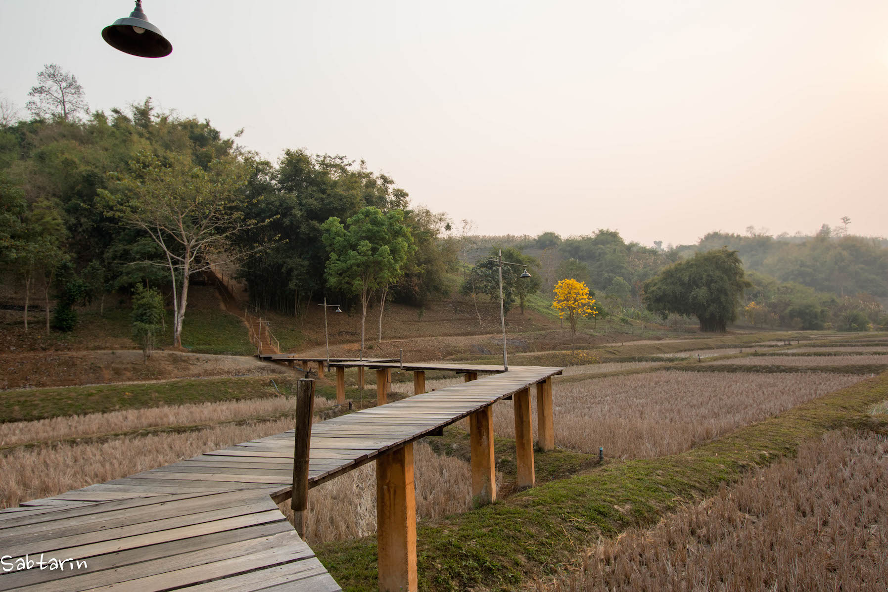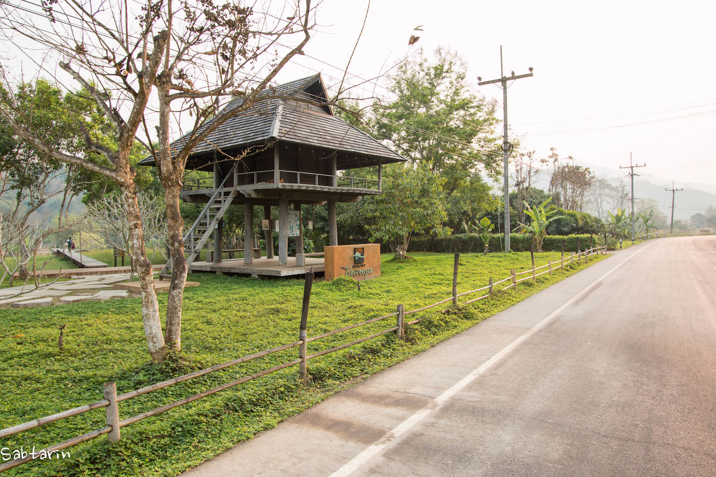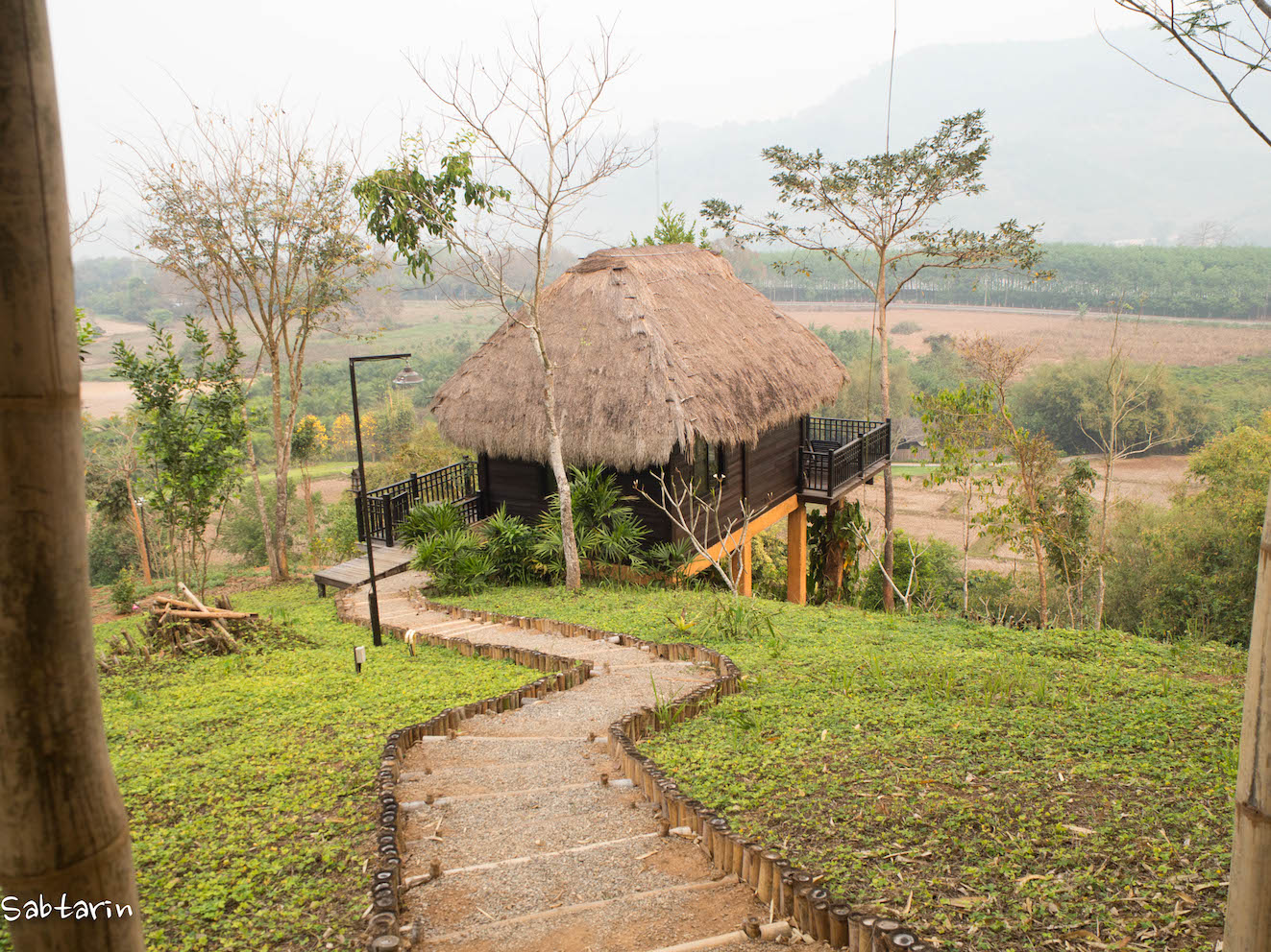 พร้อมกับชี้ให้ดูบนเนินเขาเห็นอยู่ไกลลิบๆถามว่าประมาณกี่กิโลครับน้องเค้าบอกว่าเดินไปบนสะพานประมาณ400เมตร เดินขึ้นบันได165ขั้นแล้วก็เดินต่อไปอีก400เมตร นึกในใจ โห ไกลมากแต่ไม่ใช่ปัญหาสำหรับคนหนุ่มอย่างผม คริๆ น้องบอกว่าสัมพาระเดี๋ยวน้องเค้าขนไปให้ผมก็เอาไปแต่กระเป๋ากล้อง ส่วนอาหารเย็นเค้าให้สั่งไว้เลย แล้วจะมีคนนำใส่ปิ่นโตไปส่งให้ที่บ้านพัก หลังจากสั่งอาหารผมก็เริ่มเดินทางเลยครับ