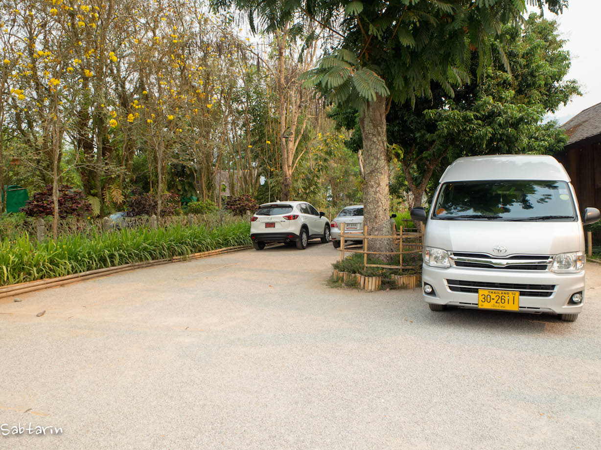 ฝั่งตรงข้ามจะเป็นที่จอดรถ ออฟฟิศและที่พักชื่อบ้านริมโขง