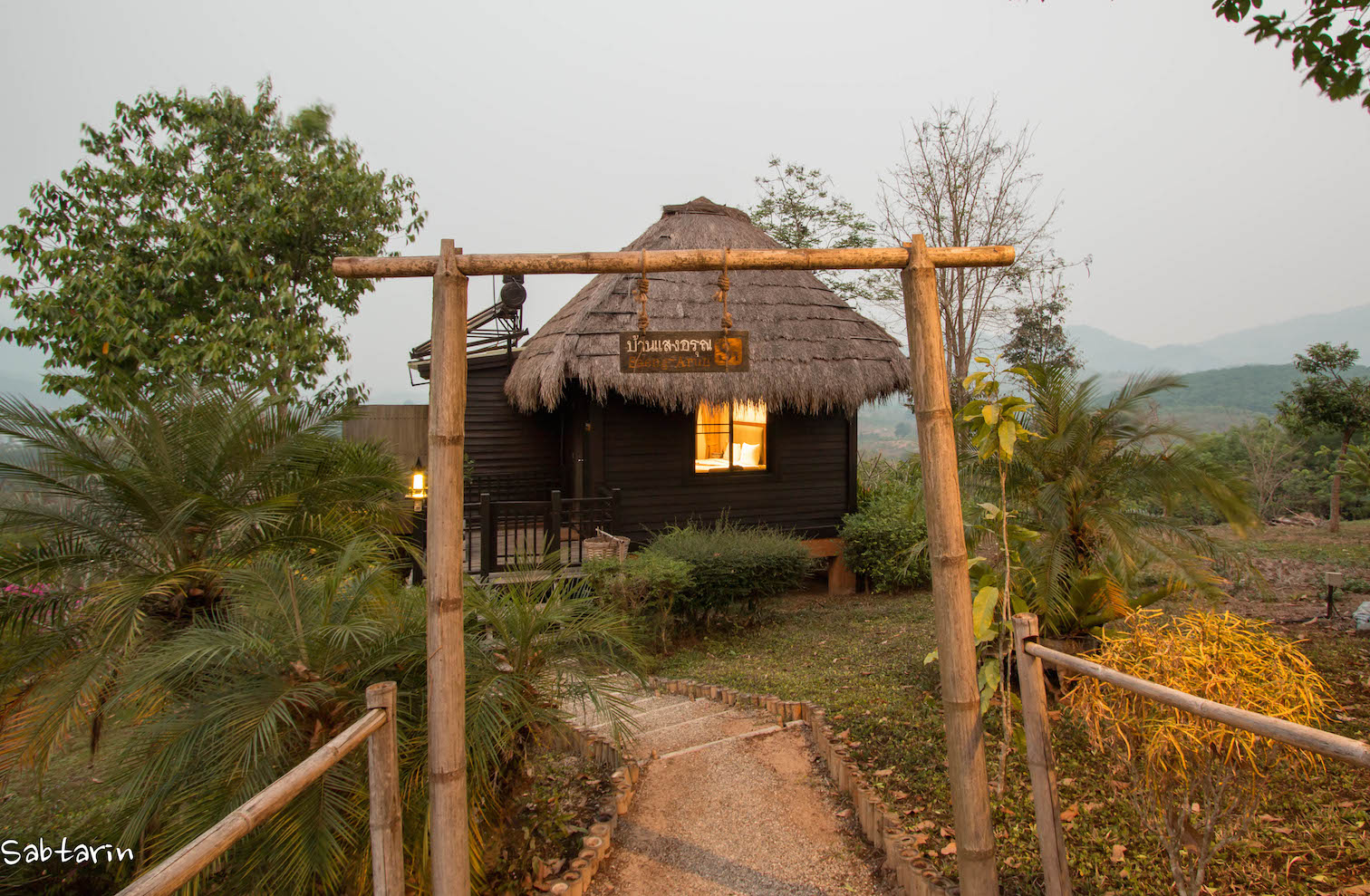 วันเดินทางทางรีสอร์ทก็โทรมาประมาณเที่ยงถามว่าถึงไหนแล้วครับ ผมตอบว่าใกล้ถึงพะเยาแล้วครับ ปลายสายแนะนำว่าถ้าไม่มีธุระที่เชียงรายให้เลี้ยวขวาตรงแยกแม่ต๋ำ ผ่านอำเภอดอกคำใต้ เชียงคำ อำเภอเทิง ผมก็เลยใช้เส้นทางนี้ พร้อมแนะนำว่าอยากให้มาเช็คอินก่อน5โมงน่ะครับ คงกลัวเราจะหลง จะได้มีเวลาบอกทาง เพราะทางค่อนข้างจะเปลี่ยวถ้าเป็นช่วงตอนกลางคืน 5โมงเย็นผมก็มาถึงไร่พอดีด้วยการนำทางของGoogle map ในมือถือ มาถึงก็เจอไร่แสงอรุณอยู่ติดถนนใหญ่เลยครับ จริงๆนึกว่าต้องเข้าซอยไป