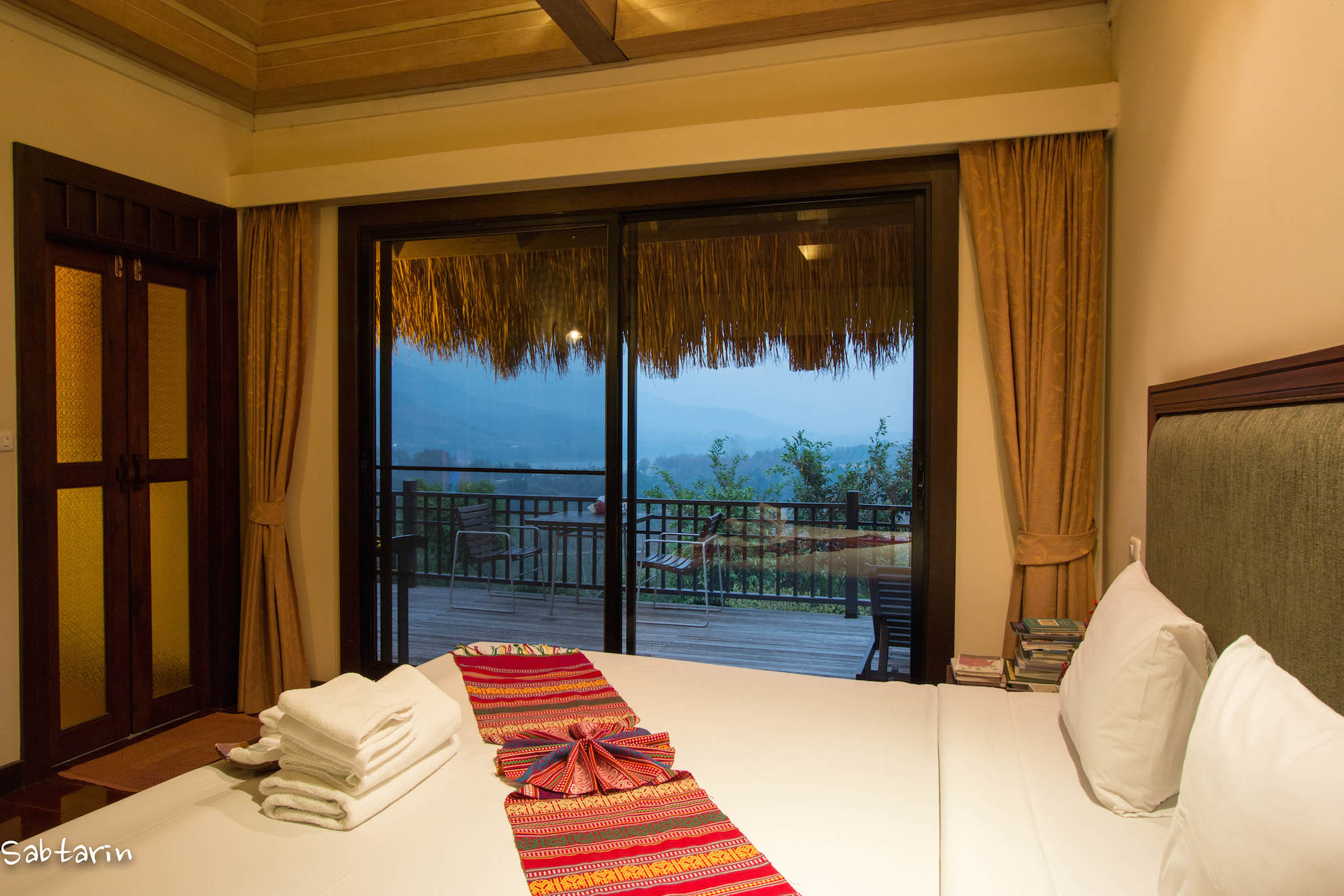 ด้านหลังห้องเป็นระเบียงกว้างต้องบอกว่ากว้างมากๆพร้อมวิวภูเขาตอนเช้าสามารถชมพระอาทิตย์ขึ้นได้เพราะอยู่ทางทิตย์ตะวันออก