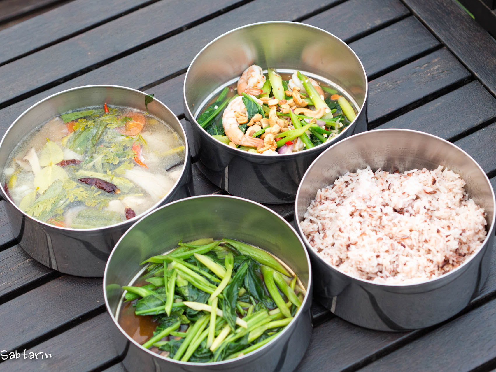 หลังจากถ่ายรูปสักพักอาหารที่สั่งไว้ตอนอยู่ออฟฟิศก็ใส่ปิ่นโตมาส่ง สั่งกับข้าวสามอย่างมีผัดกุ้ง ต้มยำปลาคัง คะน้าผัดน้ำมันหอย รสชาติก็ถือว่าอร่อยครับผักคะน้าสดและกรอบ