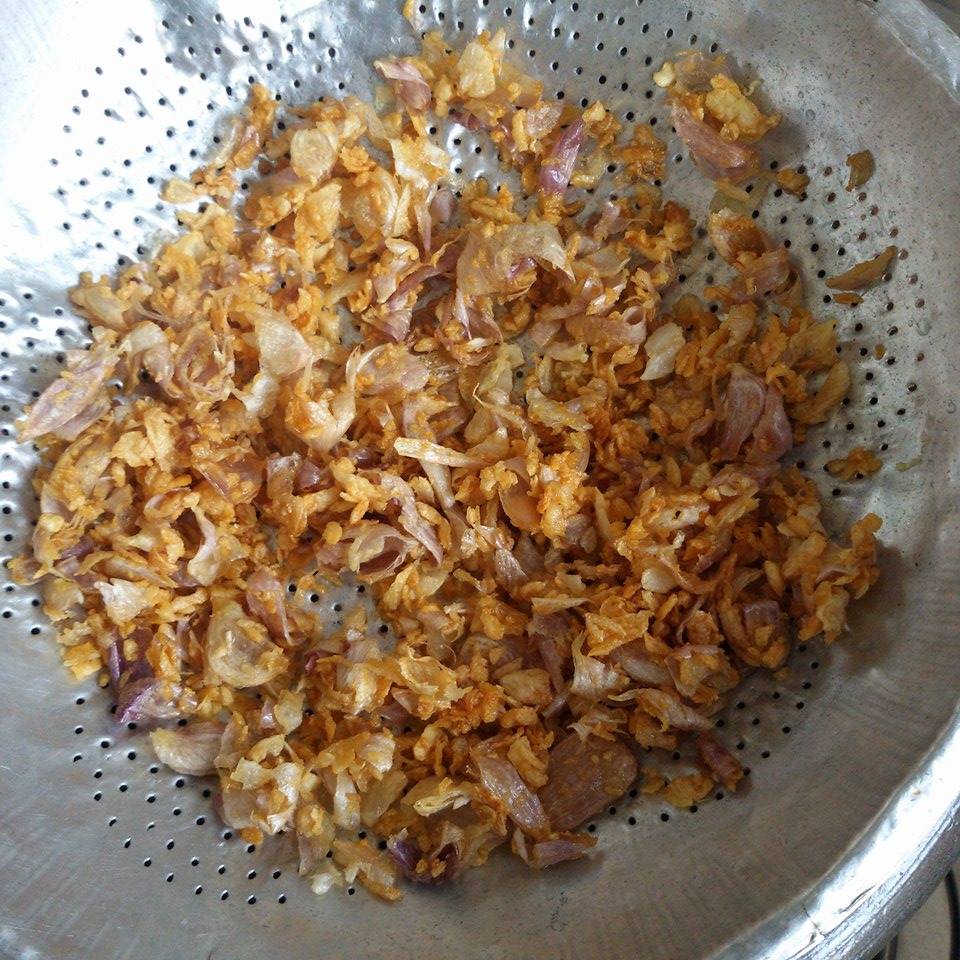 4.เจียวกระเทียมจนเหลือง นำขึ้นพักไว้ให้สะเด็ดน้ำมัน
