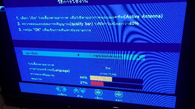 ซื้อกล่องมาแล้ว มาต่อปรากฏว่าช่องเสาอากาศทีวีที่ผนังนั้นมีสัญญาณอยู่แค่นี้ครับ
