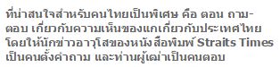 เนื่องจากไม่ได้ข่าวคร่าวเลย เลยไม่ทราบว่าทางนู้นได้เชิญนายกของเราไปด้วยหรือไม่ หากเชิญไปจะมีปัญหาหรือเปล่า เพราะทางสิงคโปร์ได้เชิญคุณทักษิณผู้ต้องหาคดีอาญา ที่ได้หลบหนีจากทางการไทย ในฐานะแขกคนสำคัญขอ