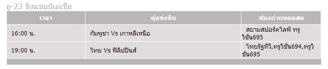 16.00 : กัมพูชา vs เกาหลีเหนือ ............. ทรูวิชั่น ช่อง 695
