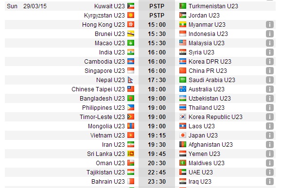 <<.. โปรแกรม AFC U23 Championship Qualify วันนี้ 29 Mar 2015 ... >>