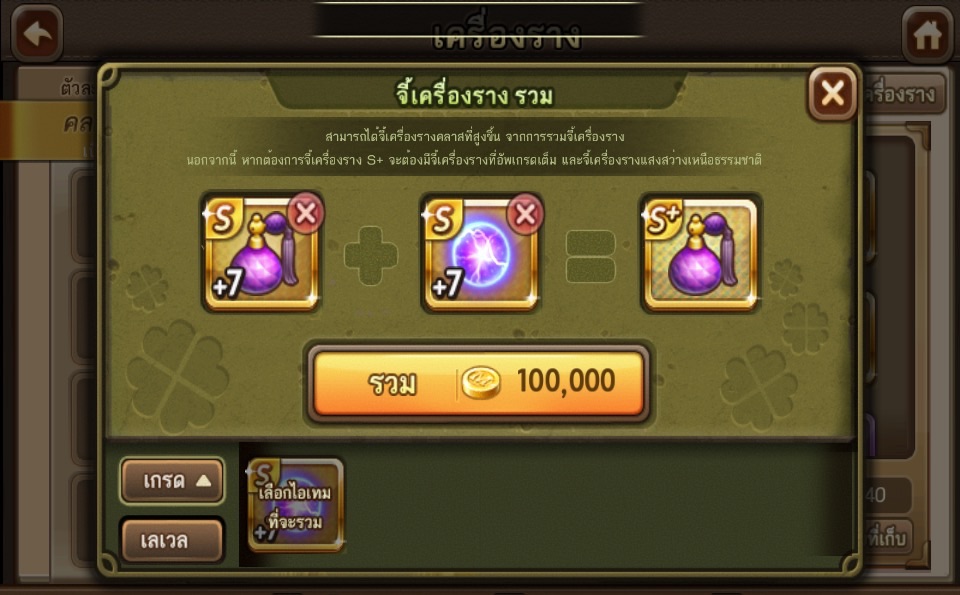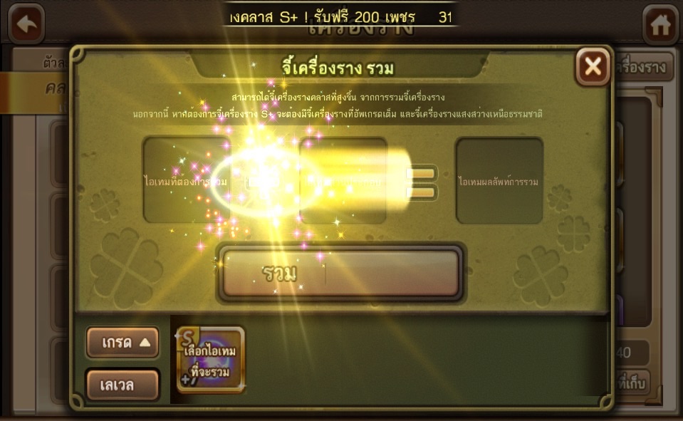 คือเรามี+7 หมวก กับ +7 น้ำหอม เราเลือกทำS+ น้ำหอมก่อน เพราะเห็นแก่เพชรที่ได้มากกว่า 100 เม็ด