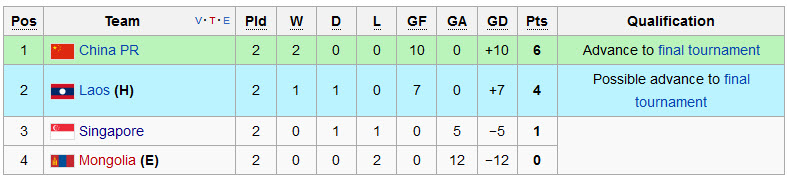 ลาวเป็นที่ 2 นัดสุดท้ายเจอจีน จีนเสมอได้ แต่แพ้ไม่ได้เพราะจะตกเป็นที่ 2 ทันที ในขณะที่ลาวถ้าเสมอก็ยังมีแต้มน้อยกว่าไทย