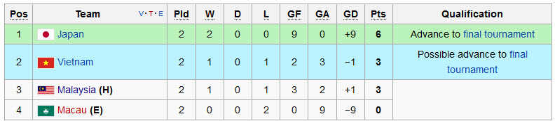 นัดสุดท้ายเวียดนามจะชนะมาเก๊าแน่ แต้มจะเท่ากับไทย แต่ต้องยิงประตูให้ได้เยอะที่สุด ซึ่งตอนนี้เขา -1 ถ้ายิง 5-0 ถึงจะได้ +4 ซึ่งเทียบฟอร์มแล้วพอมีโอกาส แต่ยากซักหน่อย เพราะมาเลเซียก็ได้มาจากมาเก๊าแค่ 2-0 แต่ก็อย่างว่าใครจะไปรู้