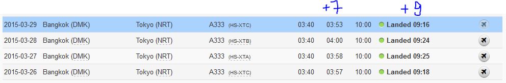 จากรูปจะเห็นว่าขาไป (เวลา+7 จากรูป) จะเลทเล็กน้อยไม่เกิน 20 นาที
