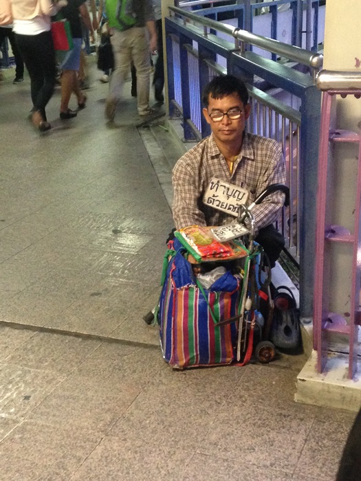 สายตาคุณน้าก็เหมือนจะไม่ค่อยดีนะค่ะ เหมือนจะมองไม่ค่อยเห็น ขาแกก็เหมือนกันค่ะไม่ค่อยดี เราช่วยแกซื้อธูปบ่อยมาก จนตอนนี้มีธูปเต็มห้องไปหมดแล้ว เมื่อวันศุกร์เราเจอคุณน้าขายธูปอยู่บนทางเชื่อมรถไฟฟ้าศาลาแดง เราเลยกะจะเอาเงินให้คุณน้าอย่างเดียว แต่คุณน้าไม่รับค่ะ....คุณน้าบอกกับเราว่า "แค่อยากจะขายธูป.....หนูเอาธูปไปด้วยนะ" แต่สุดท้ายเราก็ตื้อคุณน้าให้รับแต่เงินจนได้