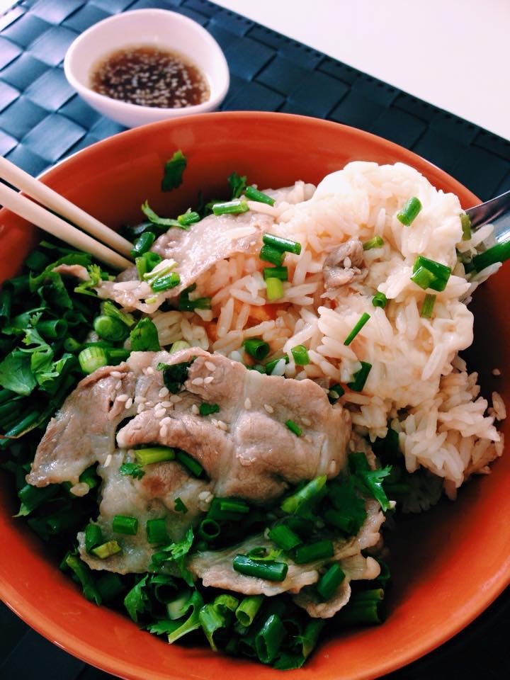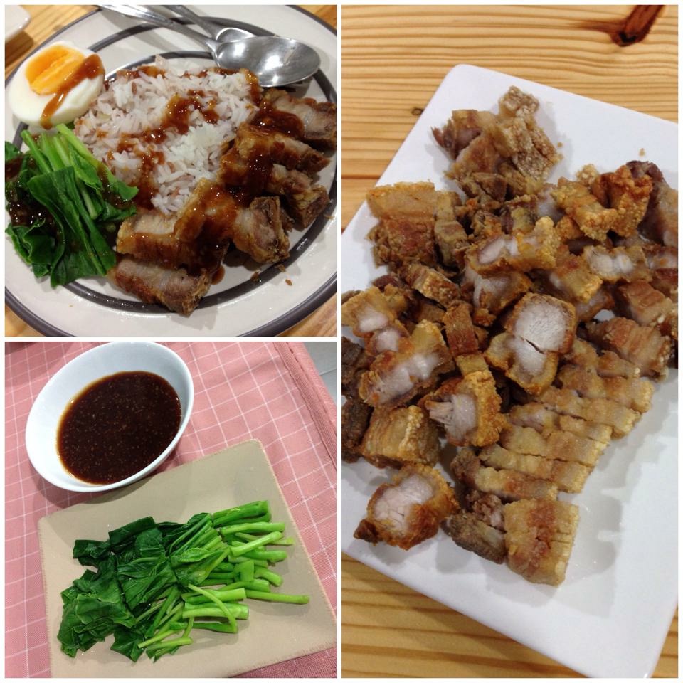 21. ข้าวหมูกรอบ ทำน้ำราดเอง ทานคู่กับคะน้าลวก
