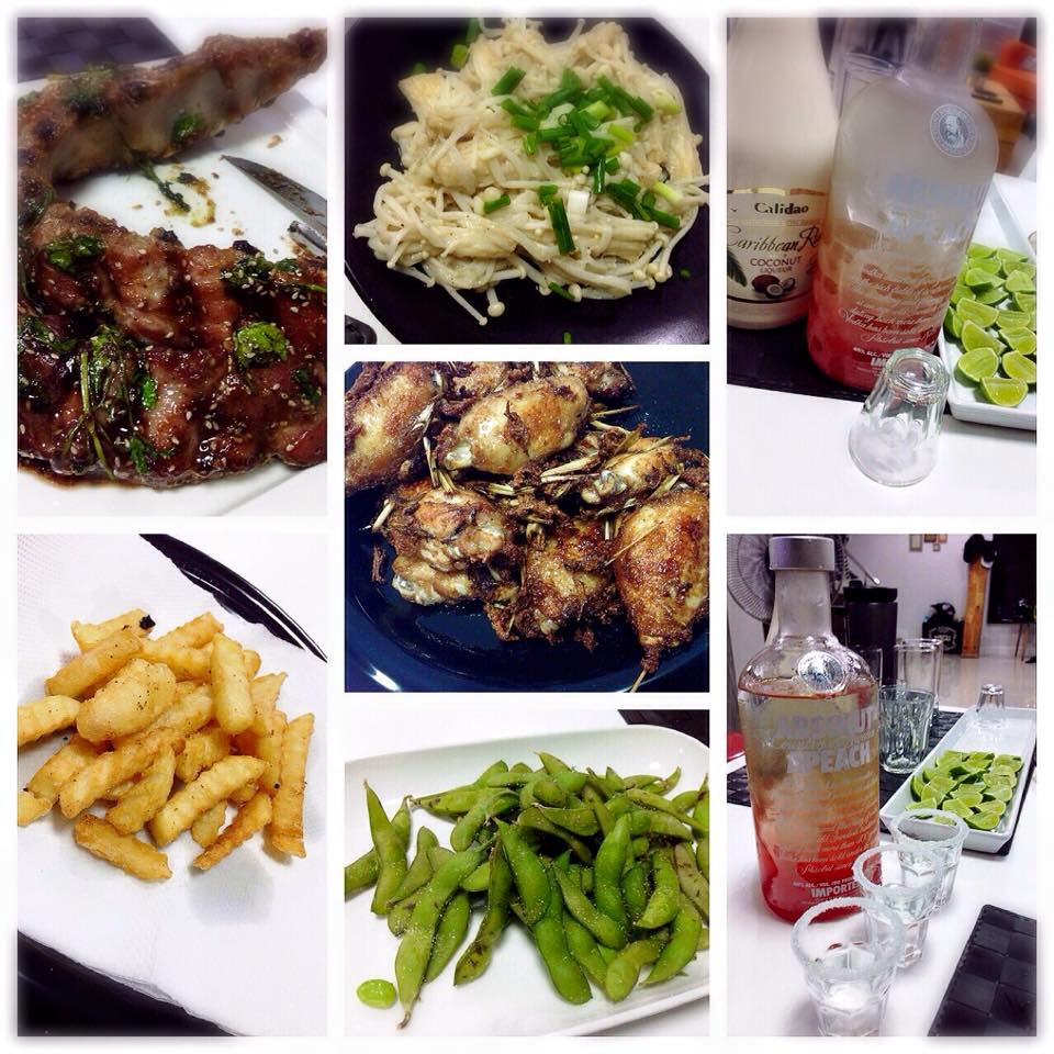 3. ไก่วิ้งแซ่บ + มันบดอบชีส + เนื้อสไลด์ (ซื้อ) + ปูนึ่งทานกับน้ำจิ้มซีฟู้ด + ปูอัดวาซาบิ (ซื้อมาจัดวาง) + หอยนิวซีแลนด์อบเนย + กุ้งมังกรอบเนย + ปลาหมึกย่าง