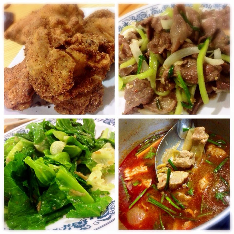 28. น่องไก่ต้มเผือก + ผัดผักบุ้งไฟแดง + เบ่ค่อนผักรวม + ซึ่โครงหมูทอดกระเทียม (ดำไปนี้สแต่ยังอร่อยอยู่)