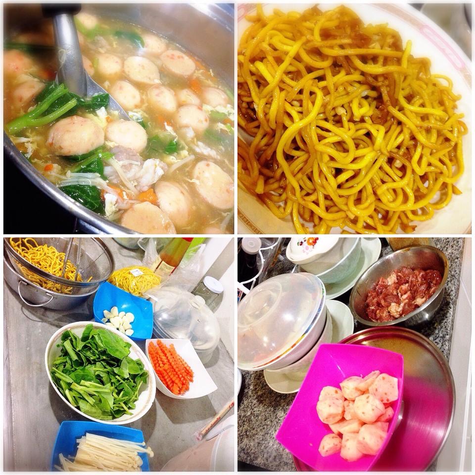 31. บะหมี่น้ำทานกับเกี๊ยวทำเอง + ยำปลาหมึก
